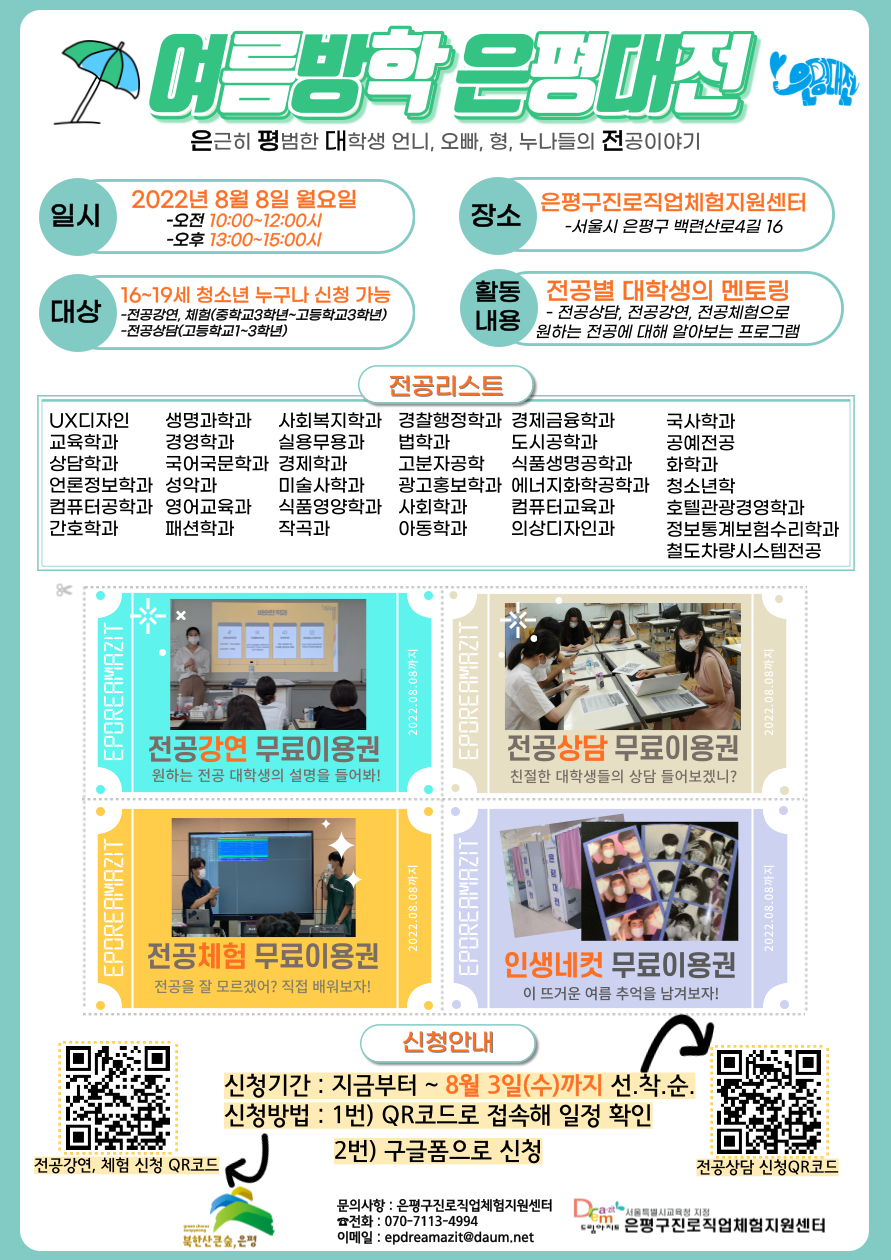¡Ø½Åû¹æ¹ý : Æ÷½ºÅÍ¿¡ QRÄÚµå ½ºÄµ OR ¾Æ·¡ ¸µÅ© Á¢¼Ó ÈÄ ½Åû - Àü°ø°¿¬ ¹× Àü°øÃ¼Çè( https://forms.gle/V765KTMsxmbJrjMk8 ) - Àü°ø»ó´ã( https://forms.gle/XoRHXmYh47F2ujky8 )