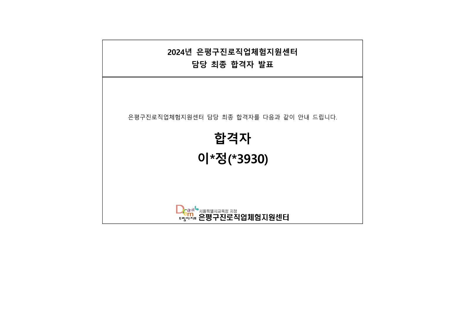´ÙÀ½±Û | ÀºÆò±¸Áø·ÎÁ÷¾÷üÇèÁö¿ø¼¾ÅÍ ´ã´ç(°è¾àÁ÷) ä¿ë ¼·ù ½É»ç ÇÕ°ÝÀÚ ¹ßÇ¥ |
