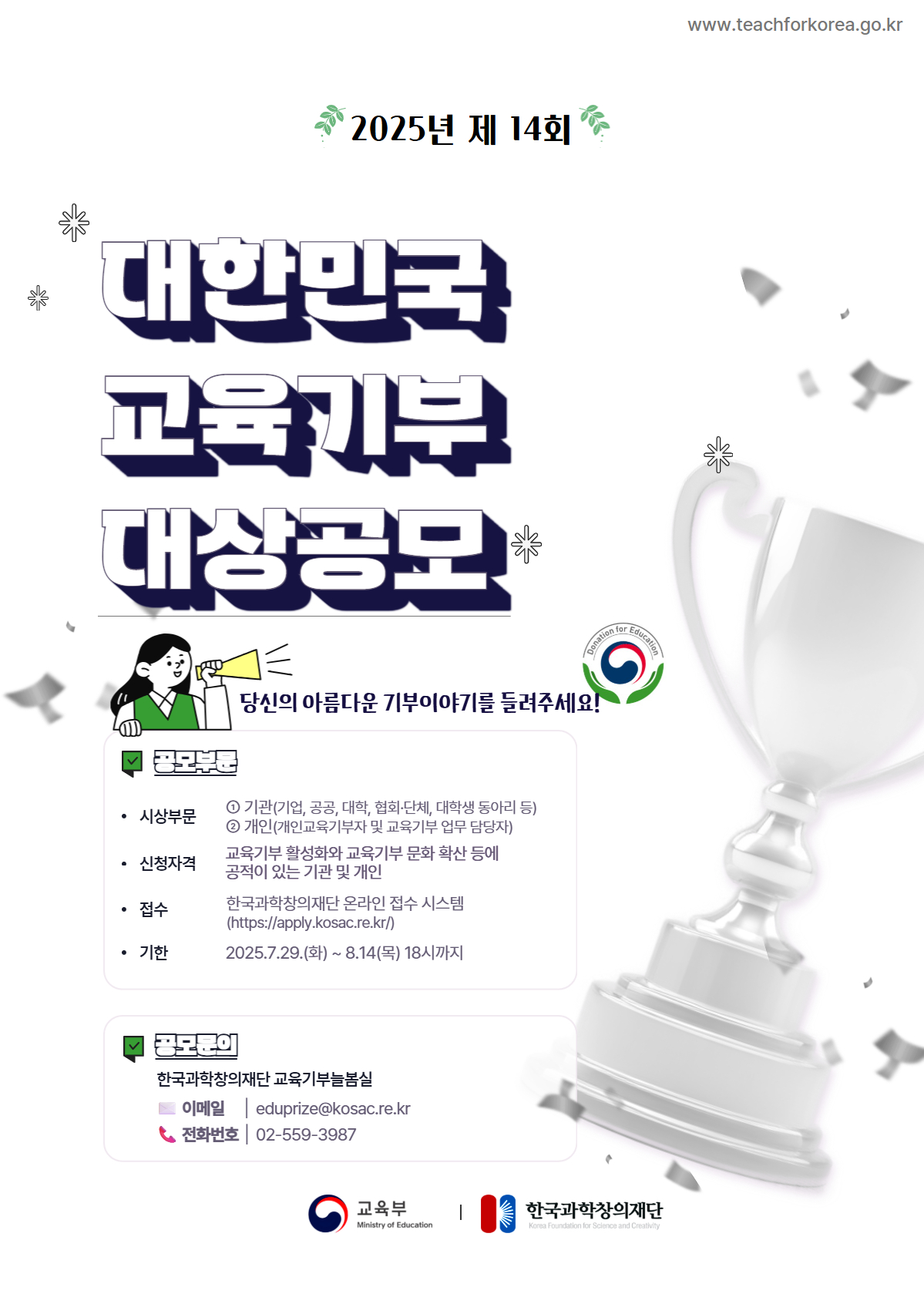 2025³â Á¦ 14ȸ ´ëÇѹα¹ ±³À°±âºÎ ´ë»ó °ø¸ð | ||