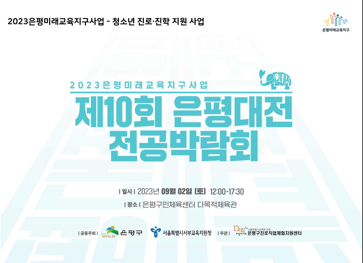 | 2023ÀºÆò¹Ì·¡±³À°Áö±¸»ç¾÷ ÀºÆò´ëÀü 9/2(Åä) Àü°ø¹Ú¶÷ȸ Âü°¡Çлý¿ë ¾È³»¹® ¹× ¿øÆäÀÌÆÛ | ||