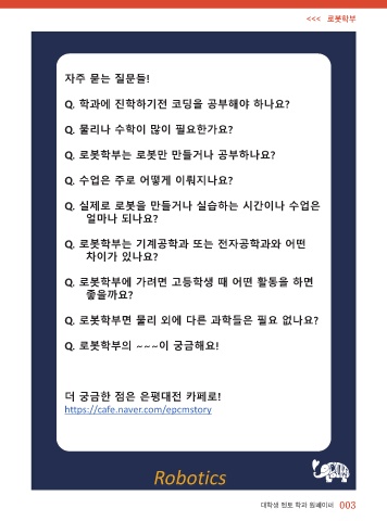 Q. 로봇학부에 가려면 고등학생 때 어떤 활동을 하면
