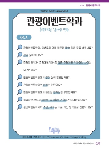 <<< 관광이벤트학과 TOURISM EVENT MANAGEMENT 관광이벤트학과 은평대전 김나연 멘토 대학생 멘토 학과 원페이퍼 057