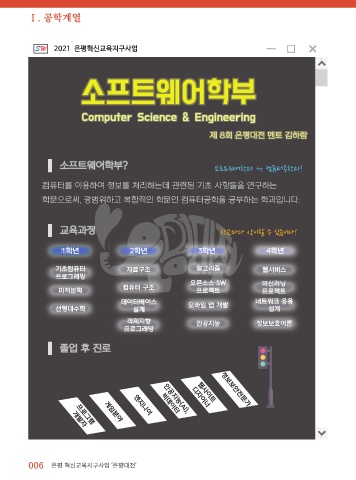 Ⅰ. 공학계열 2021 은평혁신교육지구사업 소프트웨어학부 Computer Science & Engineering 소프트웨어학과 ≒ 컴퓨터공학과! 학교마다 상이할 수 있습니다! 006 은평 혁신교육지구사업 ‘은평대전’