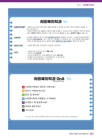 사회복지학과에서는 훌륭한 사회복지사를 양성할 수 있도록 국가의 사회복지 정책 및 제도에