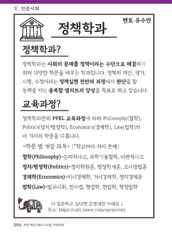 정책학과만의 PPEL 교육과정에 따라 Philosophy(철학),