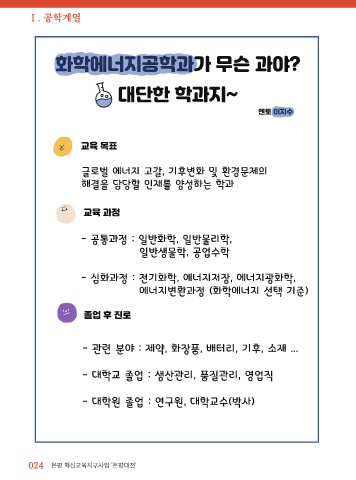 - 심화과정 : 전기화학, 에너지저장, 에너지광화학,