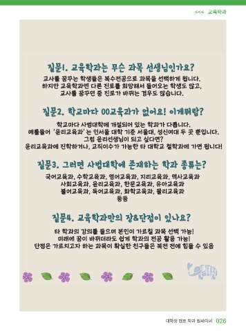 교직이수 사 사범대학 이외의 학부(과)의 학생 중 일부를 질 질문4. 교육학과만의 장&단점이 있나요?