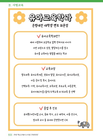 선택과목: 기악, 유아교육사상, 보육과정, 부모교육, 아동문학,