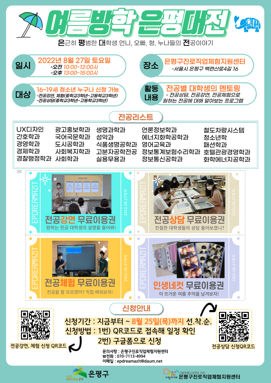 ¡Ø½Åû¹æ¹ý : Æ÷½ºÅÍ¿¡ QRÄÚµå ½ºÄµ OR ¾Æ·¡ ¸µÅ© Á¢¼Ó ÈÄ ½Åû - Àü°ø°¿¬ ¹× Àü°øÃ¼Çè( https://forms.gle/cTPYD8EvdJkEr8pQA ) - Àü°ø»ó´ã ( https://forms.gle/AWhTBK1ERBhW4Vrm6 )