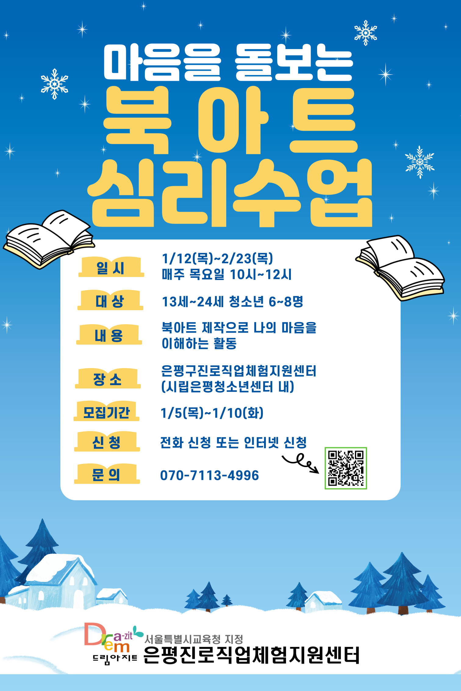ÀºÆò±¸Áø·ÎÁ÷¾÷üÇèÁö¿ø¼¾ÅÍ µå¸²¾ÆÁöÆ®¿¡¼´Â °Ü¿ï¹æÇÐ ÇÁ·Î±×·¥À¸·Î ÁøÇàÇÏ´Â '¸¶À½À» µ¹º¸´Â ºÏ¾ÆÆ® ½É¸® ¼ö¾÷'¿¡ Âü¿©Çϴ û¼Ò³âÀ» ¸ðÁýÇÕ´Ï´Ù.