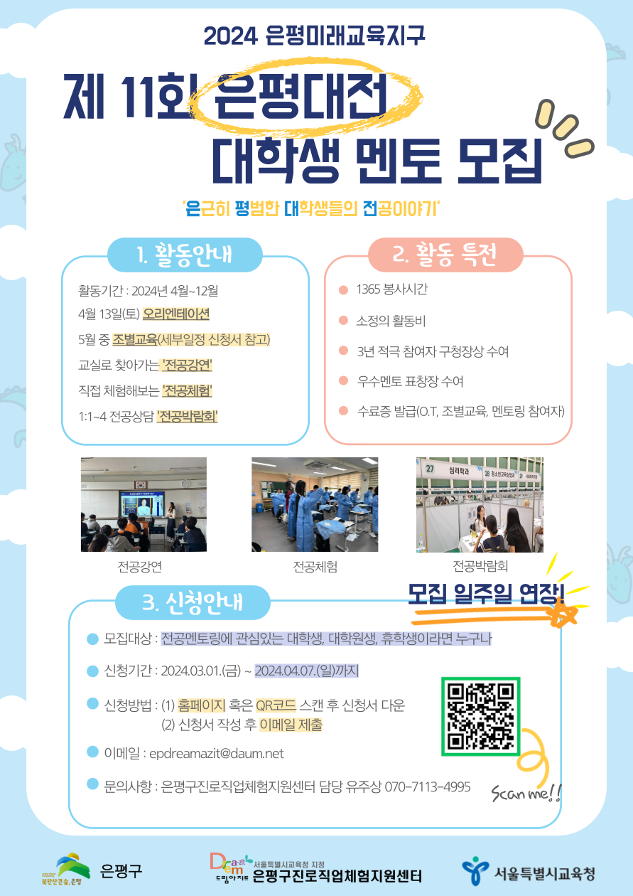 ÀºÆò±¸Áø·ÎÁ÷¾÷üÇèÁö¿ø¼¾ÅÍ¿¡¼ Àü°ø ¸àÅ丵¿¡ °ü½ÉÀÖ´Â ´ëÇлý ¸àÅ並 ¸ðÁýÇϰí ÀÖ½À´Ï´Ù.