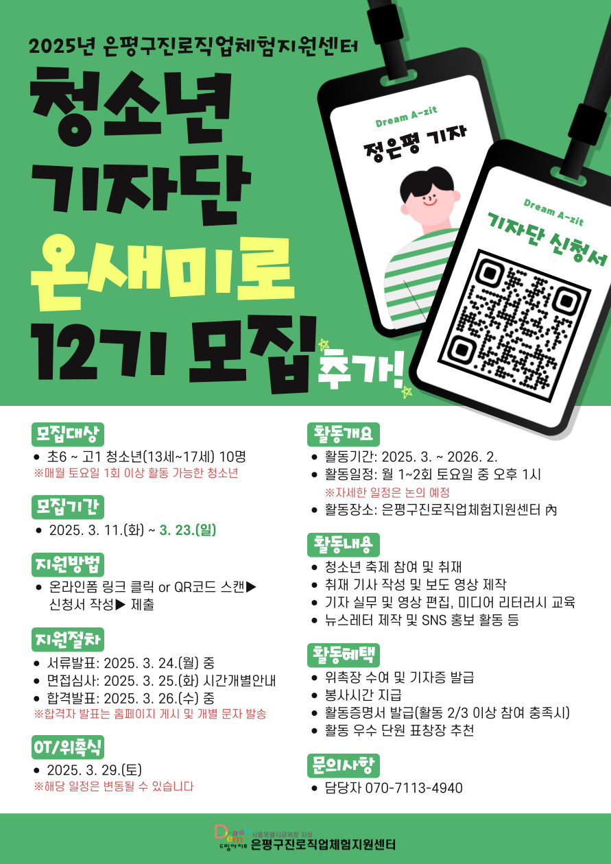 ¾È³çÇϼ¼¿ä! ÀºÆò±¸Áø·ÎÁ÷¾÷üÇèÁö¿ø¼¾ÅÍ 'µå¸²¾ÆÁöÆ®'ÀÔ´Ï´Ù😊 2025³â û¼Ò³â ±âÀÚ´Ü ¡¸¿Â»õ¹Ì·Î¡¹ 12±â ½Å±Ô ´Ü¿øÀ» Ãß°¡ ¸ðÁýÇÕ´Ï´Ù!🔥