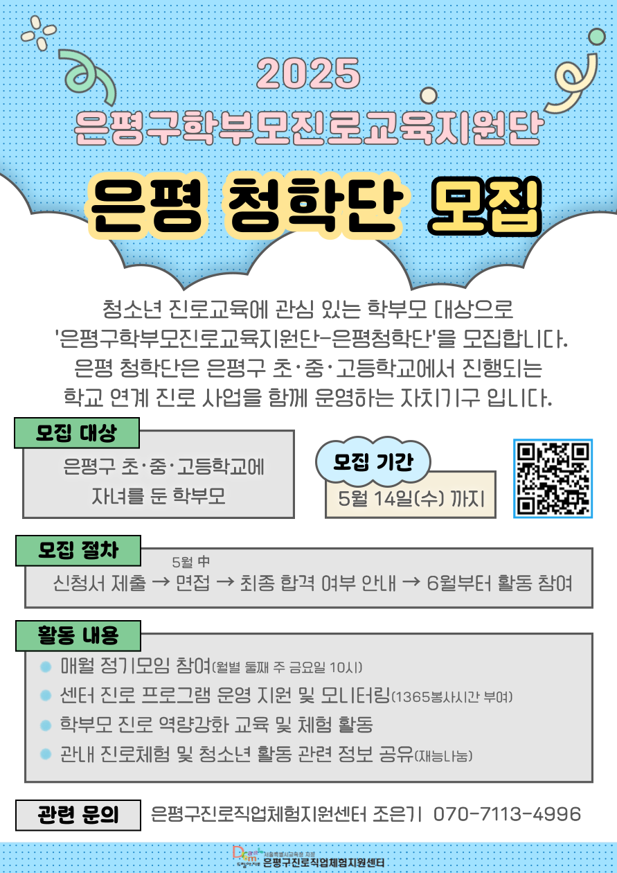 📢 2025 ÀºÆòûÇÐ´Ü ½Å±Ô ´Ü¿ø ¸ðÁý! ÀÚ³à Áø·Î±³À°¿¡ °ü½É ÀÖ´Â ÀºÆò±¸ Çкθð´ÔÀ» ã½À´Ï´Ù! ÇöÀç Çб³¿¡¼ ¿î¿µ ÁßÀΠû¼Ò³â Áø·Î ÇÁ·Î±×·¥¿¡ Á÷Á¢ Âü¿©Çϰí,